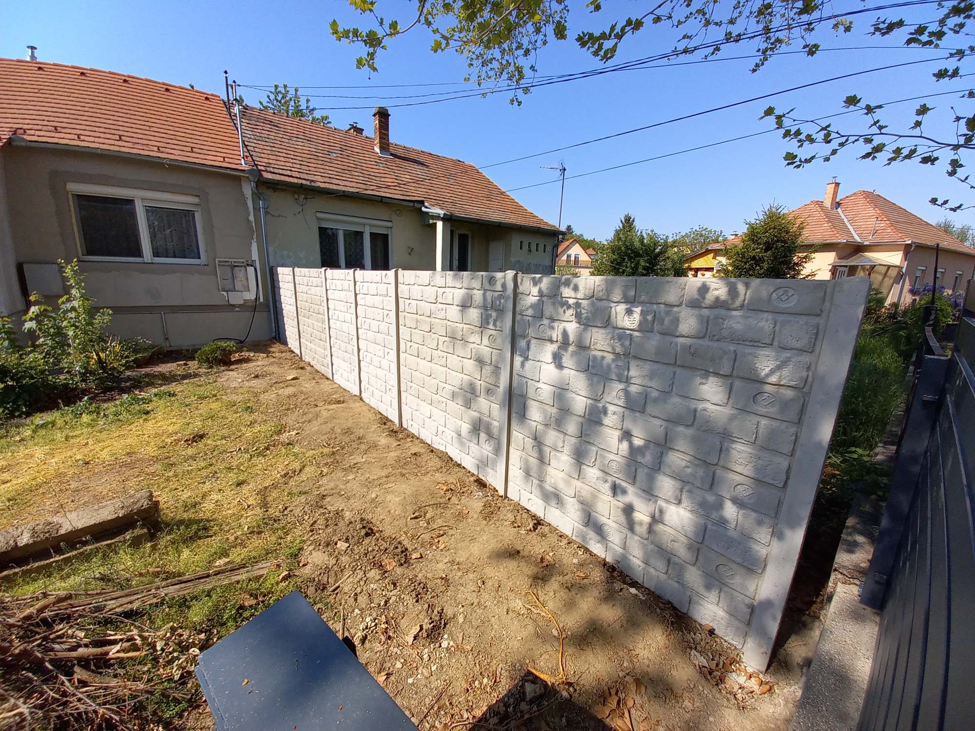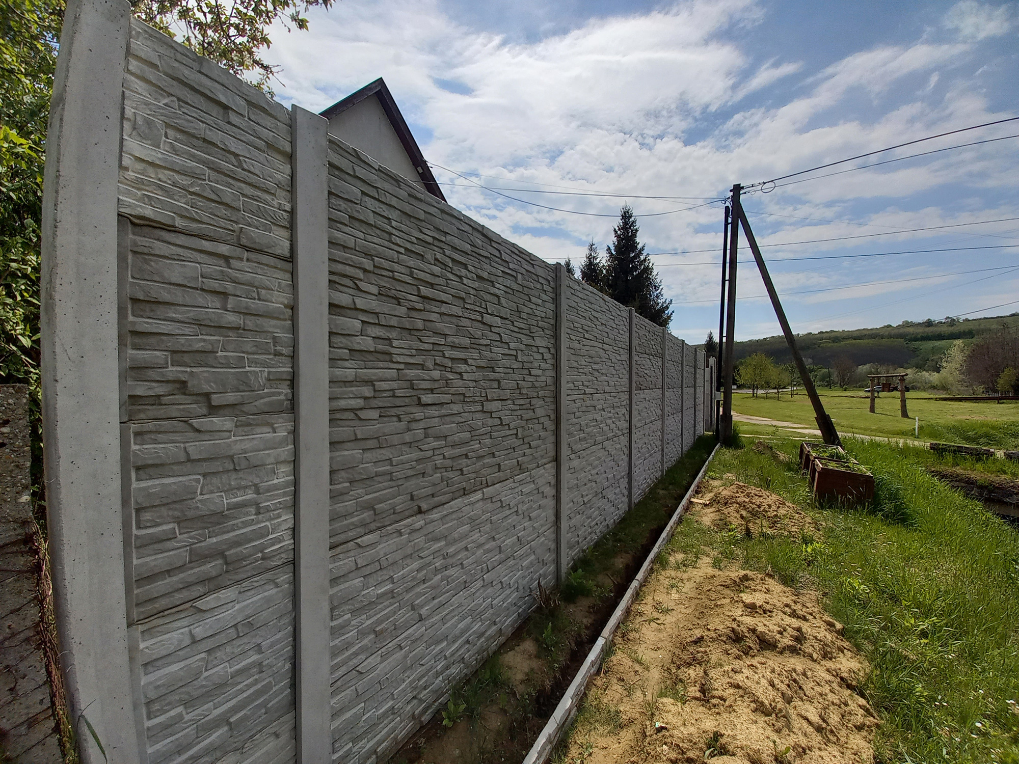 Amennyiben szükséges, a tereplejtés függvényében a mezők sarkai levághatóak beton vágókorong segítségével, illetve ha nem minden oszlopköz jön ki a mező hosszúságának megfelelően, a mező hosszát tekintve is rövidíthető. Egyesével távolítsuk el a távtartó deszkákat és helyezzük a helyére a mezőket. Az alsó, elsőként behelyezett mezőket mindig ellenőrizzük vízmértékkel! Fontos, hogy az illeszkedés az oszlopokkal megfelelő legyen. A beemelés sorrendje mindig az alsó sorral kezdődjön a kerítés merevsége miatt!